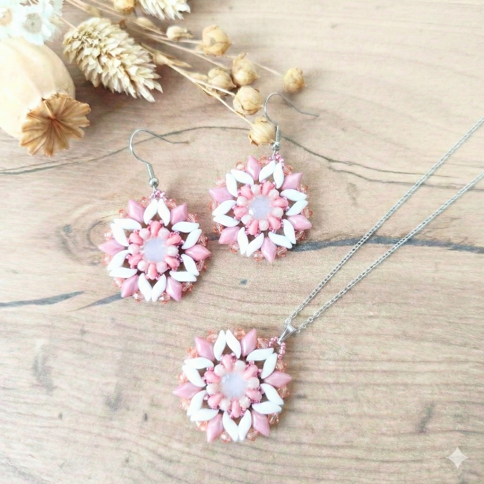A csomag fém láncot nem tartalmaz! Az alapanyag három egység (pl. medál és fülbevaló) elkészítésére elegendő.